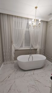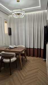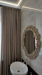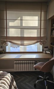 Рекомендуем выбирать сложные дизайны и комбинации тканей, так римская штора будет выглядеть стильно и не просто как полотно прямой ткани. Но стоит помнить о том что процесс вывески более сложный и соответсвенно химчистки тоже.